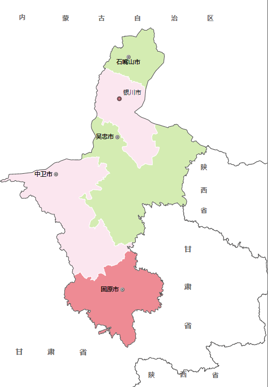 宁夏下辖五个地级市:银川市、石嘴山市、吴忠市、固原市和中卫市。